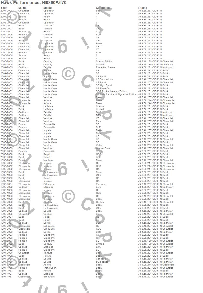 Below is an abreviated list of applications for the HPS Disc Brake Pad.