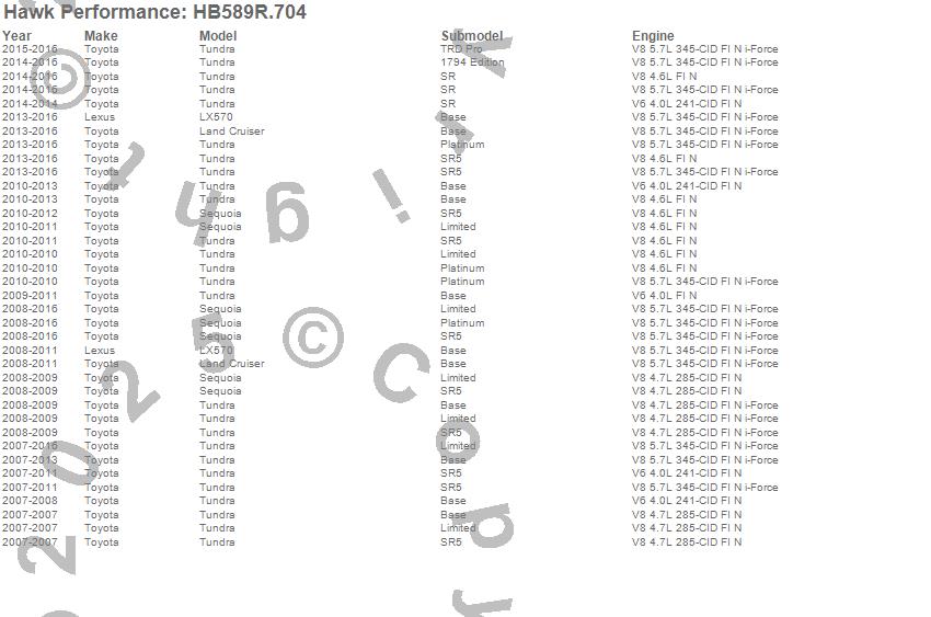Hawk Performance #HB589R.704 Street Race Disc Brake Pad Features: