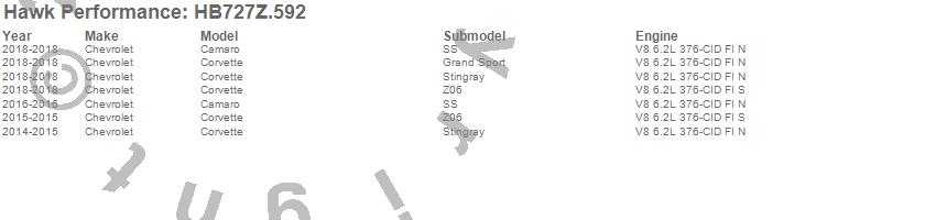 Below is an abreviated list of applications for the Performance Ceramic Disc Brake Pad.Camaro, Corvette, Chevrolet, 2018, 2016, 2015, 2014 moreā¦