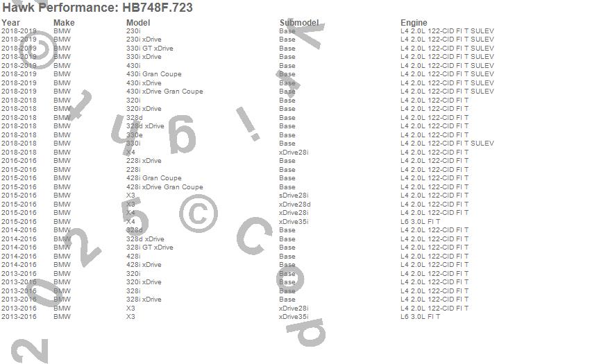 Below is an abreviated list of applications for the HPS Disc Brake Pad.