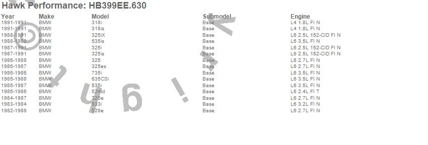 Below is an abreviated list of applications for the Blue 42 Disc Brake Pad.318i, 318is, 325, 325e, 325es, 325i, 325is, 325iX, 524td, 528e, 533i, 535i, 535is, 635CSi, 735i, BMW, 1991, 1990, 1989, 1988 moreā¦