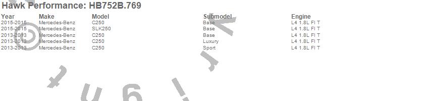 Below is an abreviated list of applications for the HPS 5.0 Disc Brake Pad.