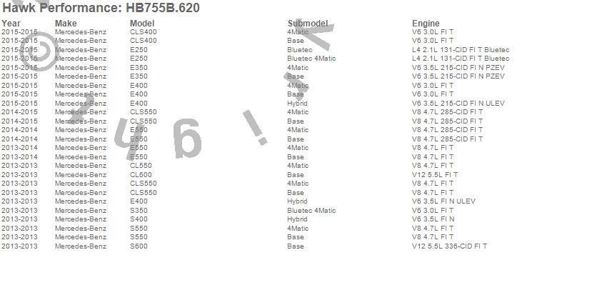 Below is an abreviated list of applications for the HPS 5.0 Disc Brake Pad.