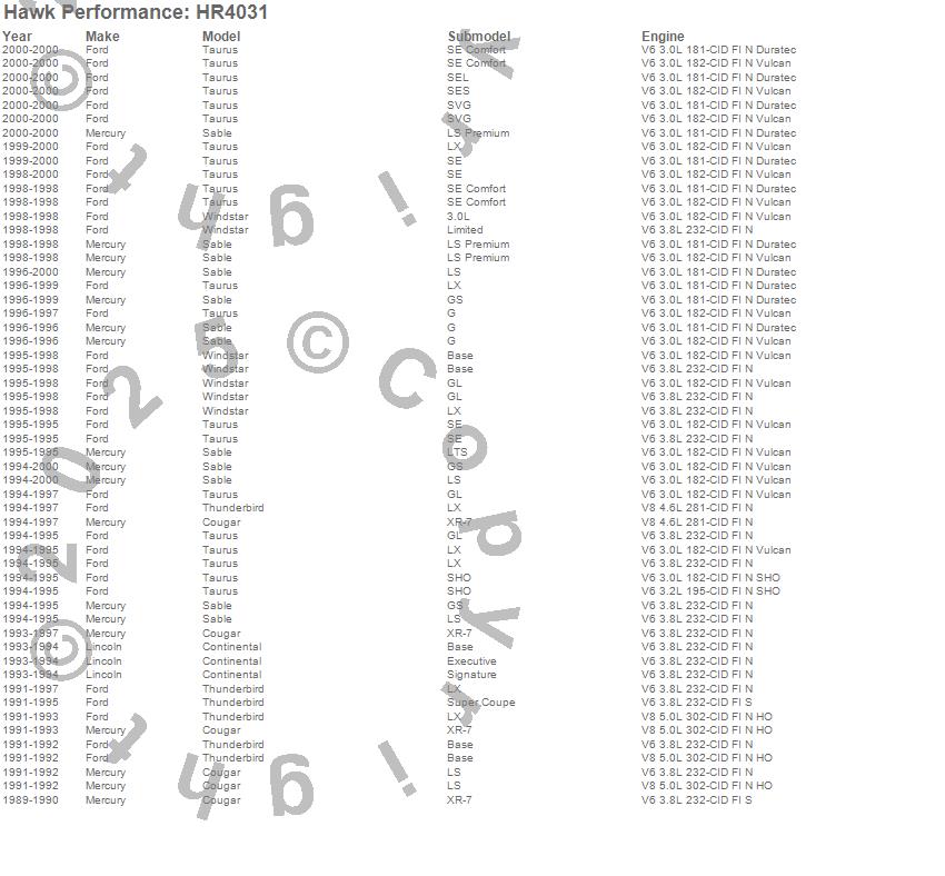 Below is an abreviated list of applications for the Sector 27 Rotor.Continental, Cougar, Sable, Taurus, Thunderbird, Windstar, Ford, Lincoln, Mercury, 2000, 1999, 1998, 1997, 1996, 1995, 1994, 1993, 1992, 1991, 1990 moreā¦
