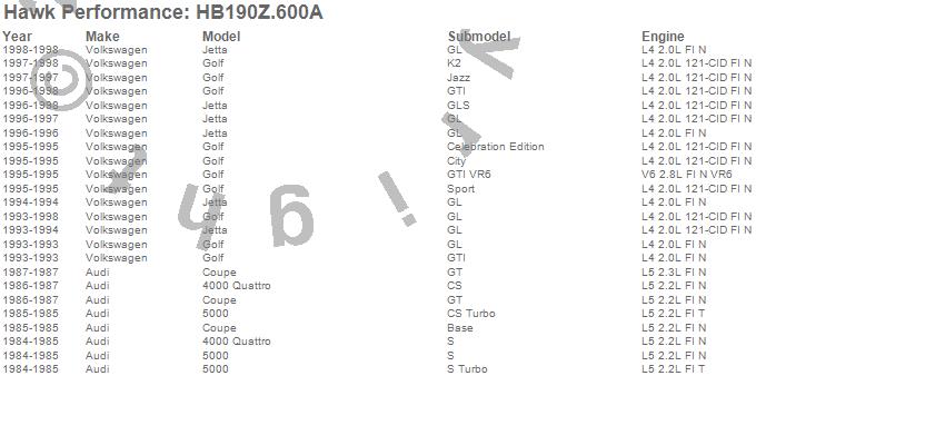 Below is an abreviated list of applications for the Performance Ceramic Disc Brake Pad.