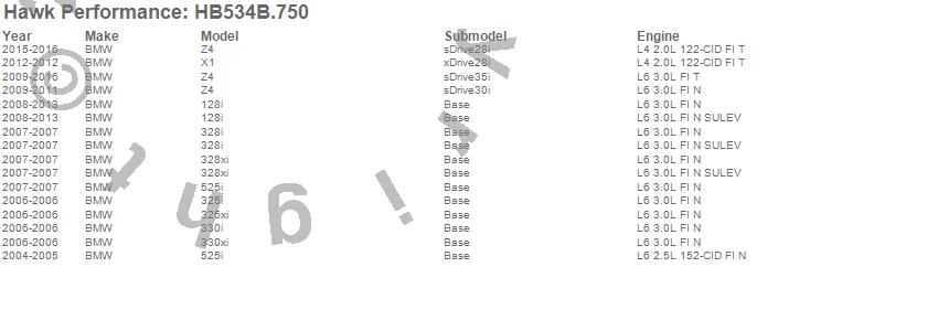 Below is an abreviated list of applications for the HPS 5.0 Disc Brake Pad.