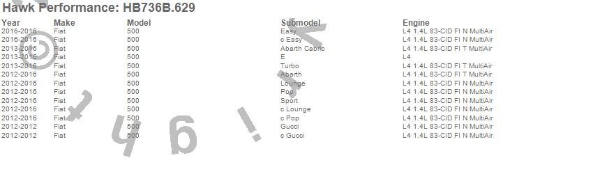 Below is an abreviated list of applications for the HPS 5.0 Disc Brake Pad.
