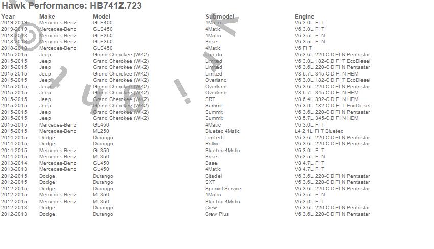 Below is an abreviated list of applications for the Performance Ceramic Disc Brake Pad.