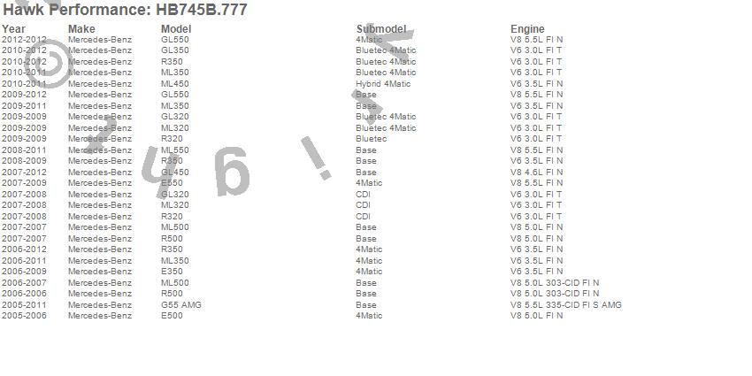 Below is an abreviated list of applications for the HPS 5.0 Disc Brake Pad.