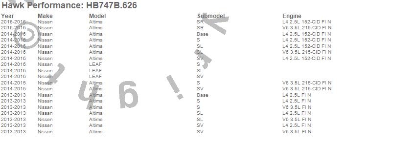 Below is an abreviated list of applications for the HPS 5.0 Disc Brake Pad.