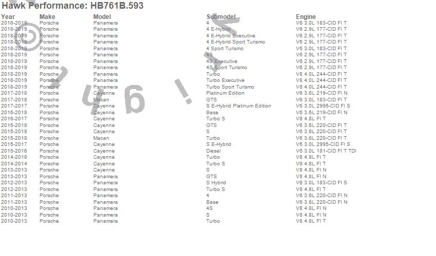 Below is an abreviated list of applications for the HPS 5.0 Disc Brake Pad.