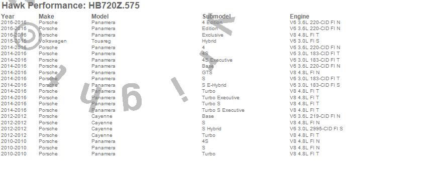 Below is an abreviated list of applications for the Performance Ceramic Disc Brake Pad.Cayenne, Panamera, Touareg, Porsche, Volkswagen, 2016, 2015, 2014, 2012, 2010 moreā¦