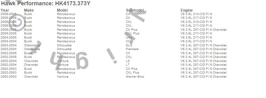 Below is an abreviated list of applications for the Sector 27 Brake Kits.Rendezvous, Silhouette, Venture, Buick, Chevrolet, Oldsmobile, 2006, 2005, 2004, 2003, 2002 moreā¦