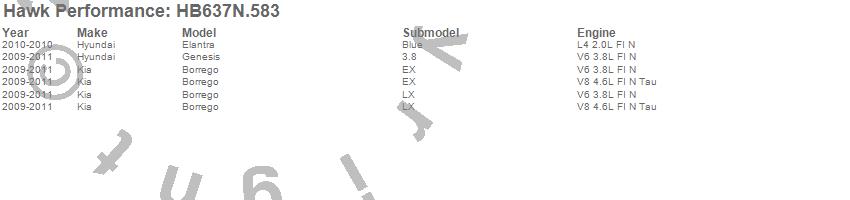 Below is an abreviated list of applications for the HP Plus Disc Brake Pad.