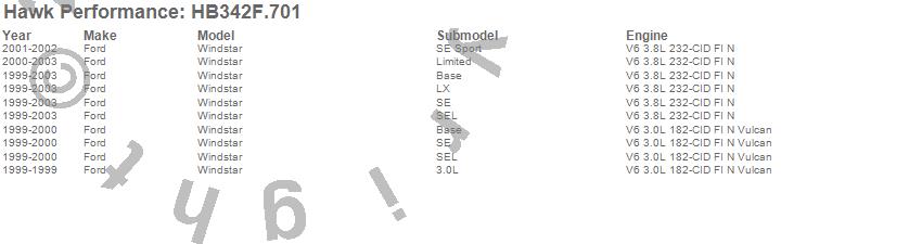 Below is an abreviated list of applications for the HPS Disc Brake Pad.