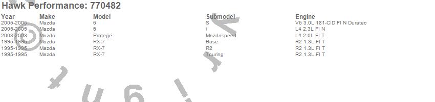 Below is an abreviated list of applications for the OES Disc Brake Pads.6, Protege, RX-7, Mazda, 2005, 2003, 1995 moreā¦