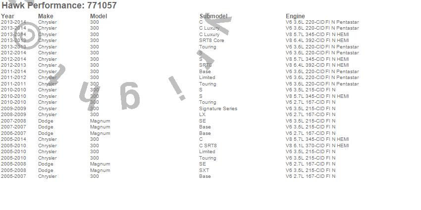 Below is an abreviated list of applications for the OES Disc Brake Pads.300, Magnum, Chrysler, Dodge, 2014, 2013, 2012, 2011, 2010, 2009, 2008, 2007, 2006, 2005 moreā¦