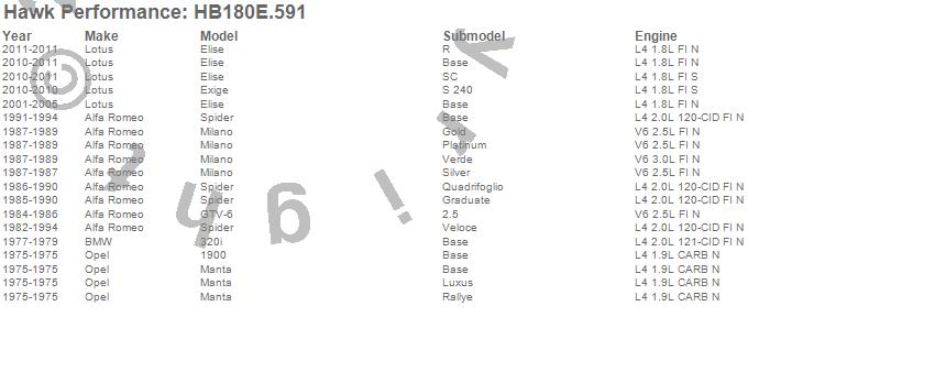 Below is an abreviated list of applications for the Blue 9012 Disc Brake Pad.