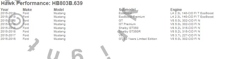 Below is an abreviated list of applications for the HPS 5.0 Disc Brake Pad.