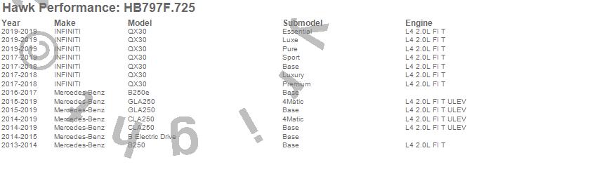 Below is an abreviated list of applications for the HPS Disc Brake Pad.B Electric Drive, B250, B250e, CLA250, GLA250, QX30, INFINITI, Mercedes-Benz, 2019, 2018, 2017, 2016, 2015, 2014, 2013 moreā¦