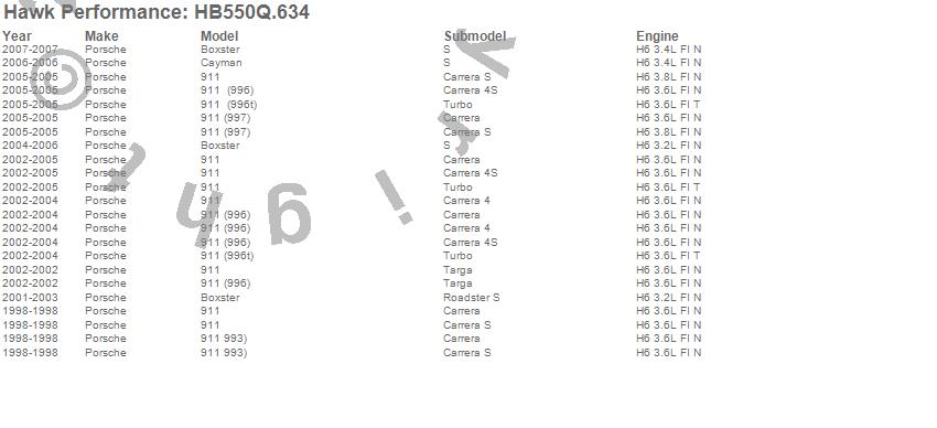Below is an abreviated list of applications for the DTC-80 Disc Brake Pad.911, Boxster, Cayman, Porsche, 2007, 2006, 2005, 2004, 2003, 2002, 2001, 1998 moreā¦