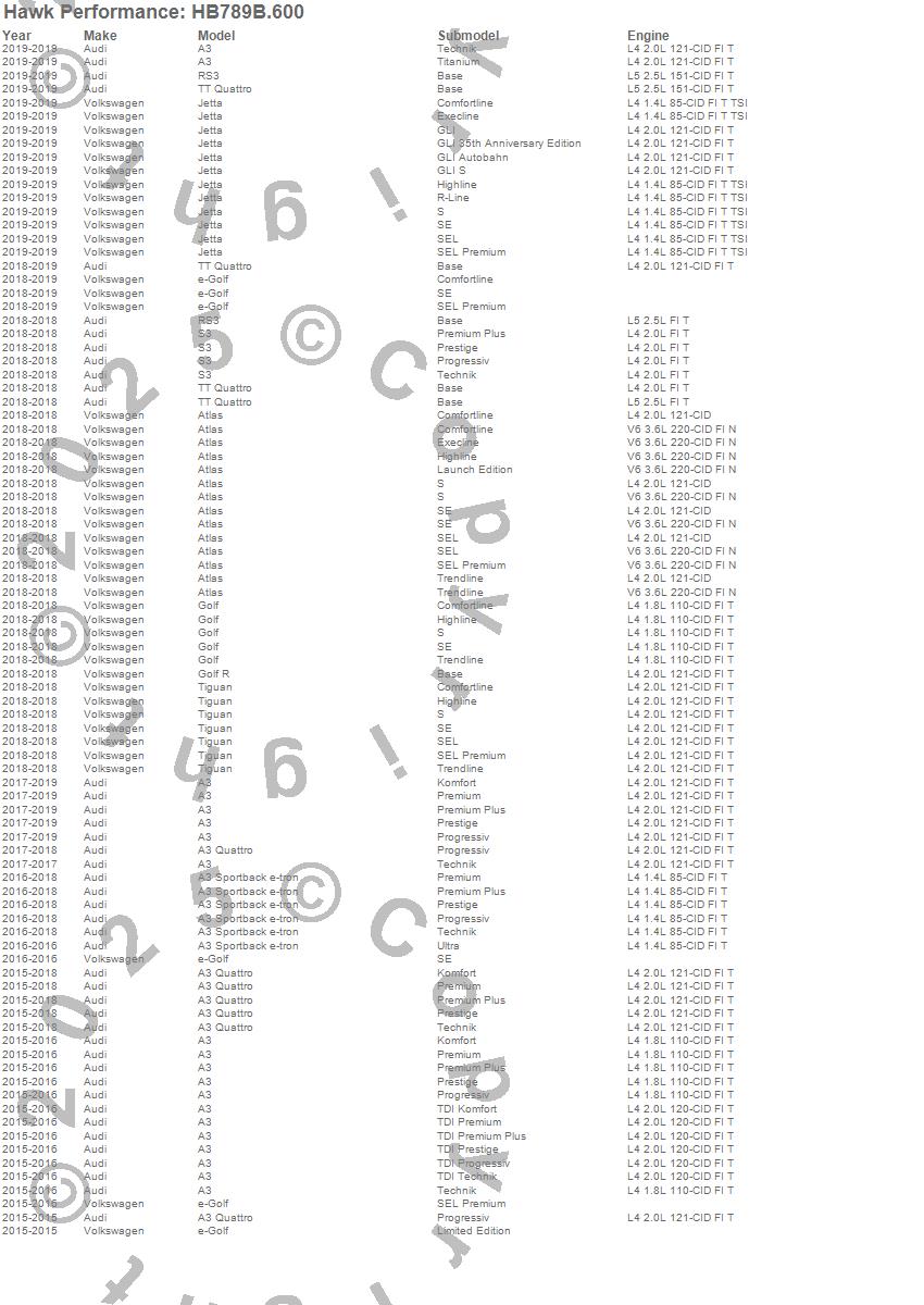 Below is an abreviated list of applications for the HPS 5.0 Disc Brake Pad.