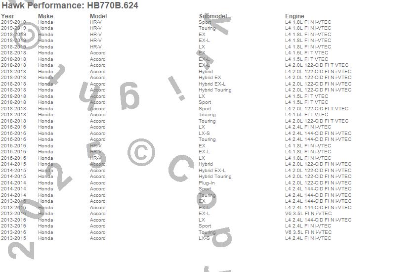 Below is an abreviated list of applications for the HPS 5.0 Disc Brake Pad.