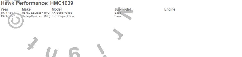 Below is an abreviated list of applications for the Non-Asbestos Organic Disc Brake Pads.FX Super Glide, FXE Super Glide, Harley-Davidson (MC), 1977, 1976, 1975, 1974 moreā¦