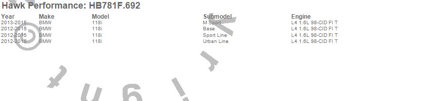 Below is an abreviated list of applications for the HPS Disc Brake Pad.
