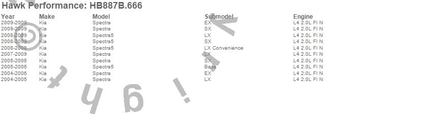 Below is an abreviated list of applications for the HPS 5.0 Disc Brake Pad.