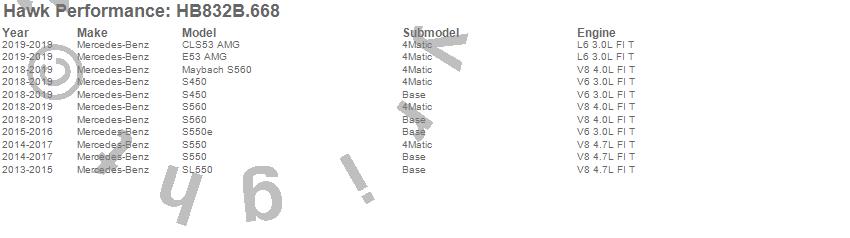 Below is an abreviated list of applications for the HPS 5.0 Disc Brake Pad.