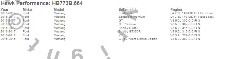 Below is an abreviated list of applications for the HPS 5.0 Disc Brake Pad.