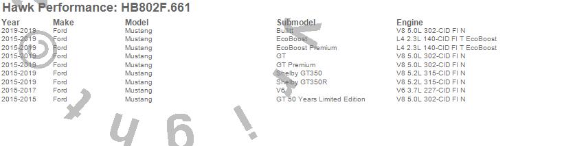 Below is an abreviated list of applications for the HPS Disc Brake Pad.