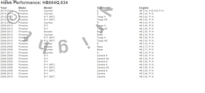 Below is an abreviated list of applications for the DTC-80 Disc Brake Pad.911, Boxster, Cayman, Porsche, 2014, 2012, 2011, 2010, 2009, 2008, 2007, 2006, 2005 moreā¦