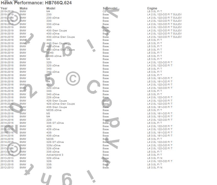 Below is an abreviated list of applications for the DTC-80 Disc Brake Pad.