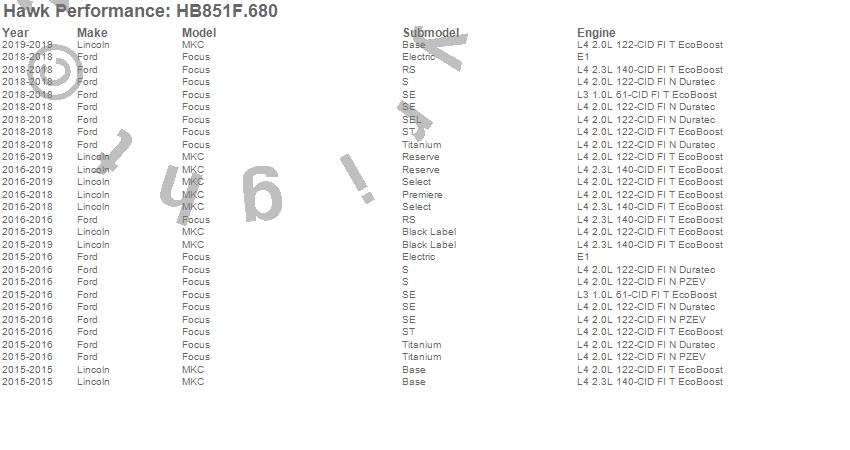 Hawk Performance #HB851F.680 HPS Disc Brake Pad Features: