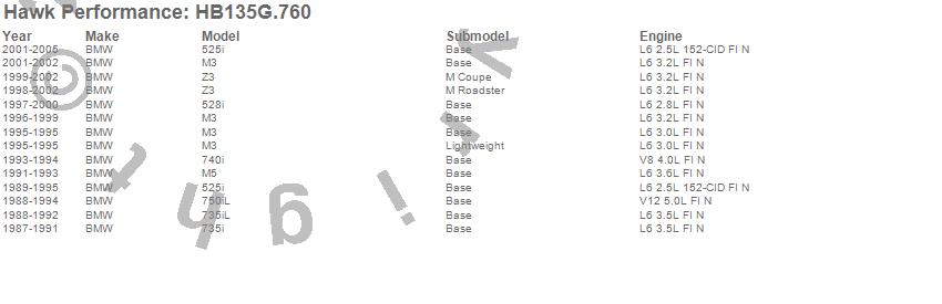 Below is an abreviated list of applications for the DTC-60 Disc Brake Pad.