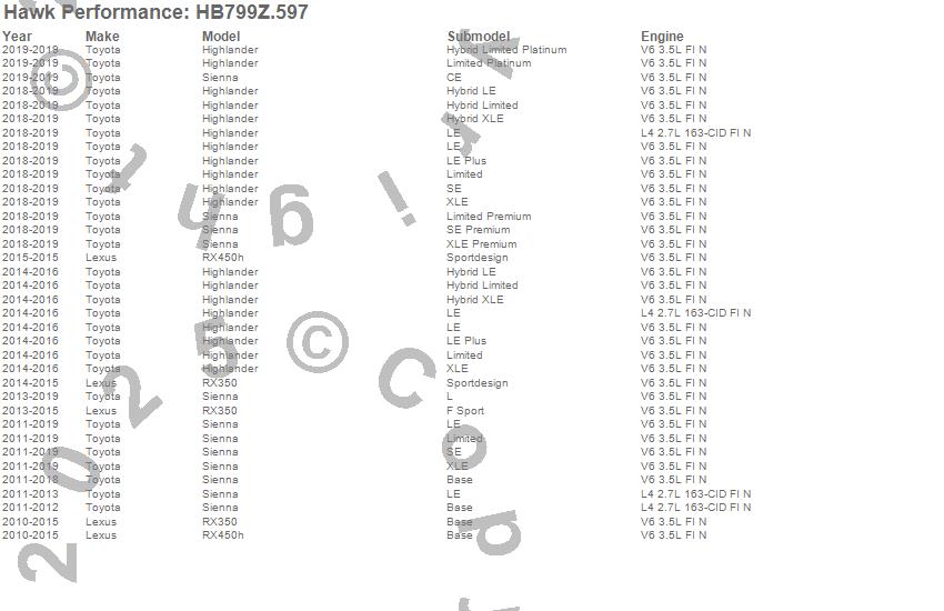 Below is an abreviated list of applications for the Performance Ceramic Disc Brake Pad.