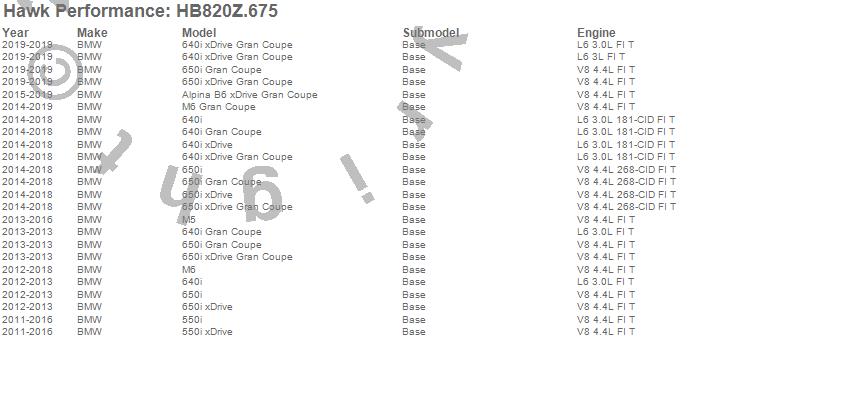 Below is an abreviated list of applications for the Performance Ceramic Disc Brake Pad.