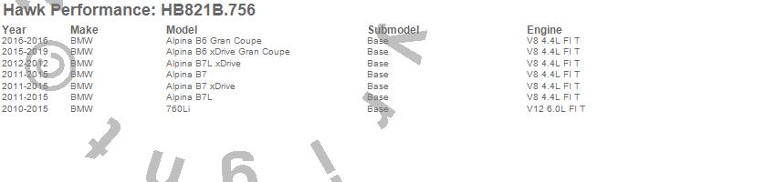Below is an abreviated list of applications for the HPS 5.0 Disc Brake Pad.