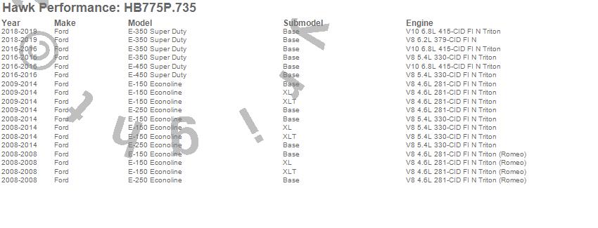 Below is an abreviated list of applications for the SuperDuty Disc Brake Pad.