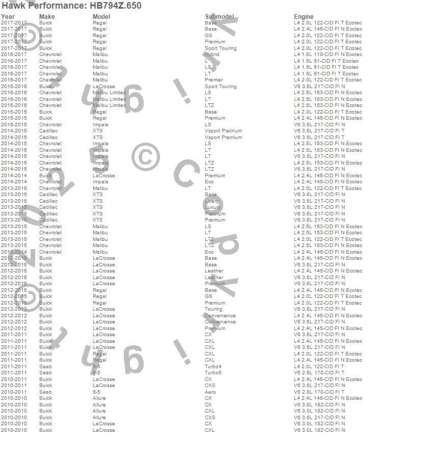 Below is an abreviated list of applications for the Performance Ceramic Disc Brake Pad.
