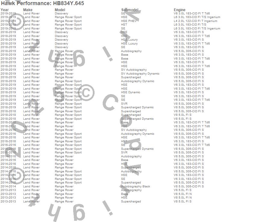 Hawk Performance #HB834Y.645 LTS Disc Brake Pad Features: