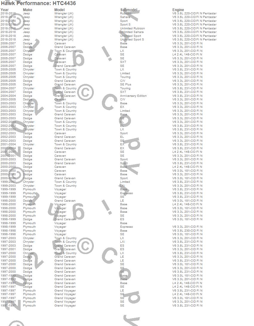 Caravan, Grand Caravan, Grand Voyager, Town & Country, Voyager, Wrangler (JK), Chrysler, Dodge, Jeep, Plymouth, 2018, 2007, 2006, 2005, 2004, 2003, 2002, 2001, 2000, 1999 moreā¦