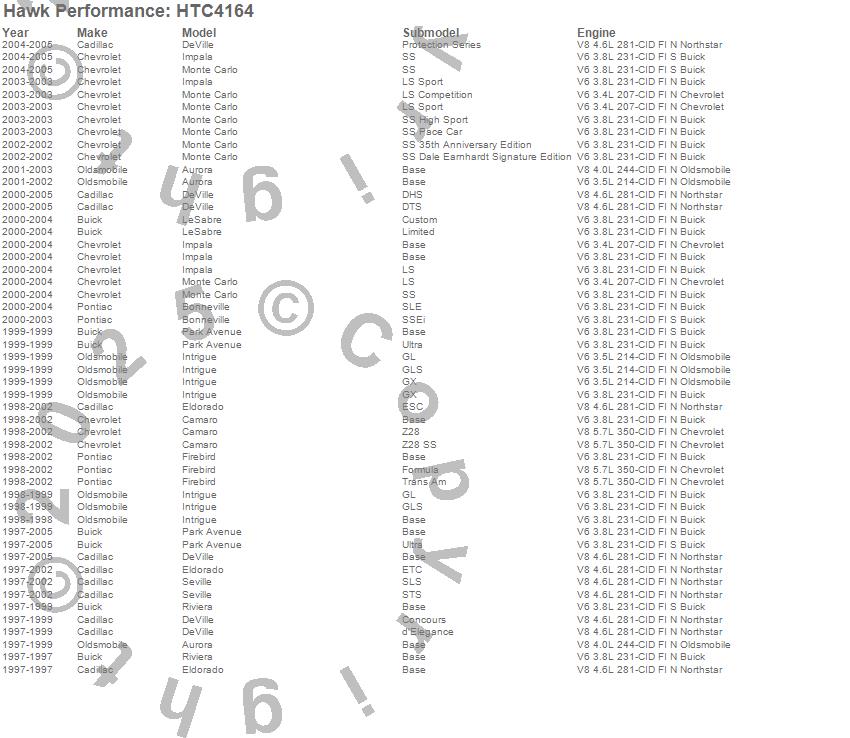 Aurora, Bonneville, Camaro, DeVille, Eldorado, Firebird, Impala, Intrigue, LeSabre, Monte Carlo, Park Avenue, Riviera, Seville, Buick, Cadillac, Chevrolet, Oldsmobile, Pontiac, 2005, 2004 moreā¦