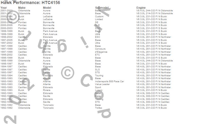 Allante, Aurora, Bonneville, DeVille, Eldorado, LeSabre, Park Avenue, Riviera, Seville, Toronado, Buick, Cadillac, Oldsmobile, Pontiac, 2005, 2004, 2003, 2002, 2001, 2000 moreā¦
