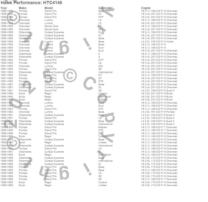 Below is an abreviated list of applications for the Talon Cross Drilled And Slotted Brake Rotors.