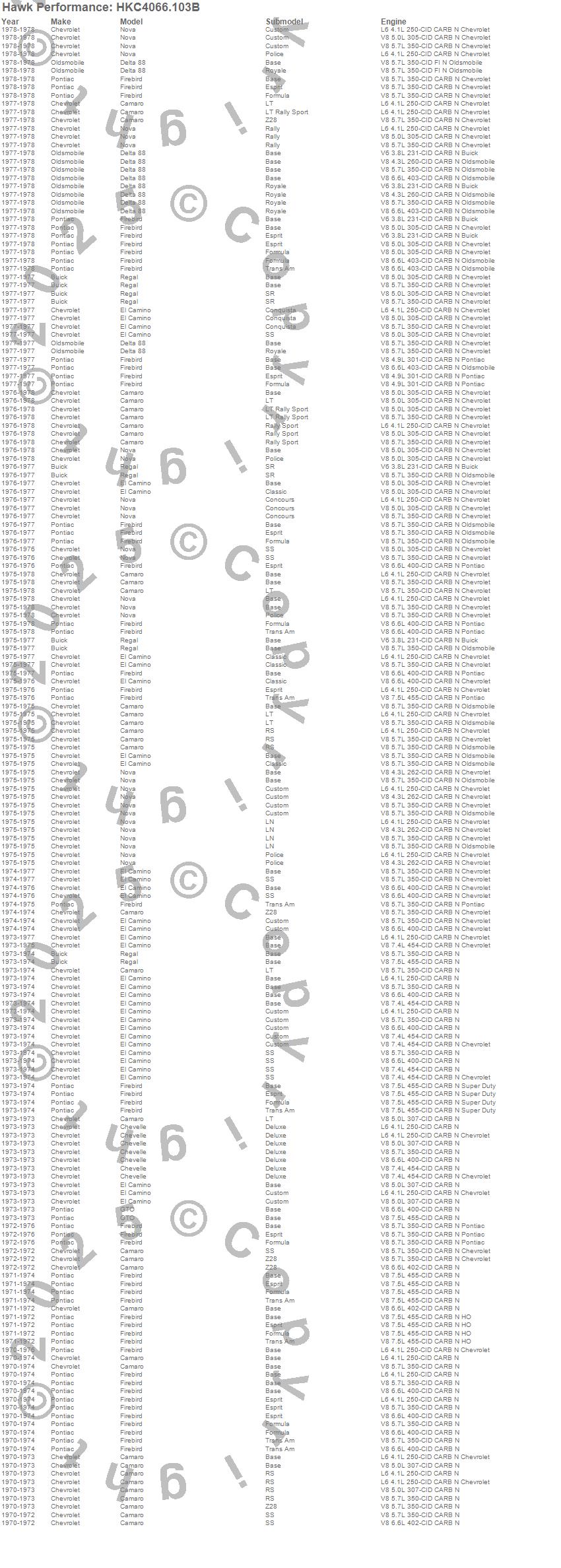 Camaro, Chevelle, Delta 88, El Camino, Firebird, GTO, Nova, Regal, Buick, Chevrolet, Oldsmobile, Pontiac, 1978, 1977, 1976, 1975, 1974, 1973, 1972, 1971 moreā¦