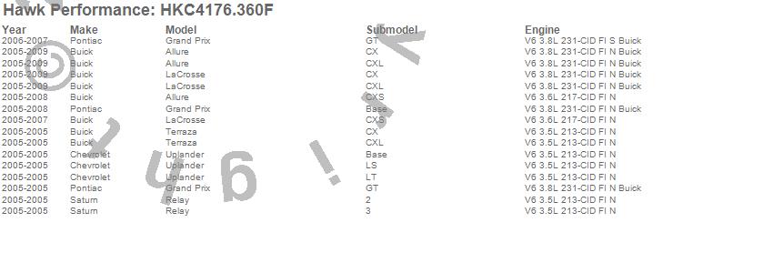 Hawk Performance #HKC4176.360F Talon Street Rotor And Brake Pad Kit Features: