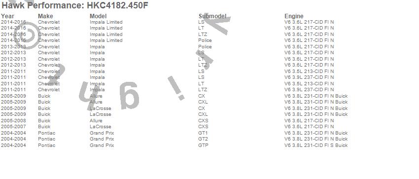 Hawk Performance #HKC4182.450F Talon Street Rotor And Brake Pad Kit Features: